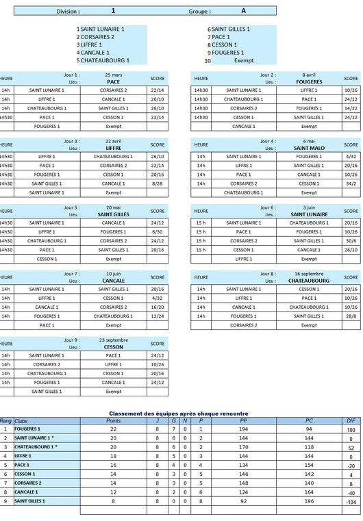 • Calendrier des rencontres
